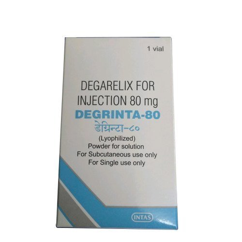 Degrinta 80mg Injection is used in the treatment of advanced prostate cancer. It works by lowering the amount of testosterone produced in the body and restricts the growth of a cancer cell. Degrinta 80mg Injection is given as an injection under the skin only under the supervision of a doctor. Do not try to self inject the medicine as it might enhance the chances of an accident or get injected into the veins. The dose and how often you take it depends on what you are taking it for. Your doctor will decide how much you need to improve your symptoms. You should take this medicine for as long as it is prescribed for you.